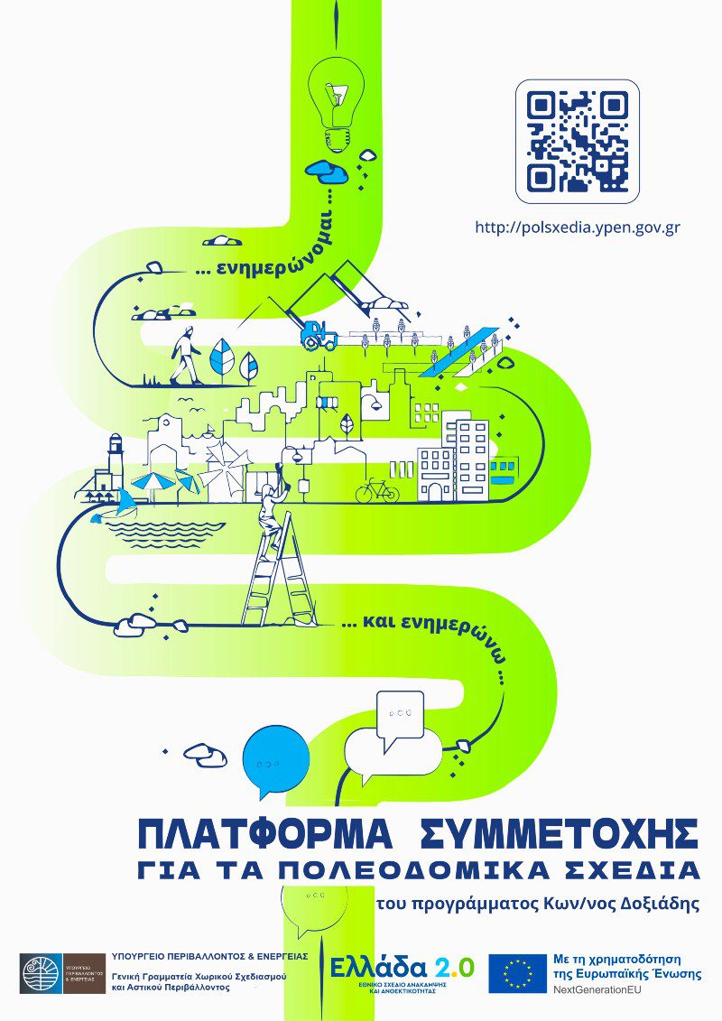 Από την Πέμπτη 20 Φεβρουαρίου (επόμενη ημέρα της παρουσίασης) ο οποιοσδήποτε ενδιαφερόμενος θα μπορεί να συμμετάσχει στη δημοσιοποίηση αποκλειστικά διαμέσου της Πλατφόρμας Συμμετοχής για τα Τοπικά και Ειδικά Πολεοδομικά Σχέδια του Προγράμματος Πολεοδομικής Μεταρρύθμισης «Κωνσταντίνος Δοξιάδης»: https://polsxedia.ypen.gov.gr/.