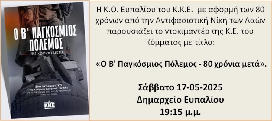 ΚΚΕ:Προβολή ντοκιμαντέρ για τον 2ο Παγκόσμιο Πόλεμο, το Σάββατο 17 Μαΐου, 7.15 μ.μ. στο Ευπάλιο