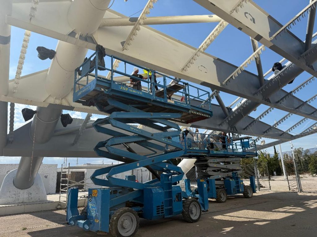 Στο Ολυμπιακό Ποδηλατοδρόμιο υλοποιείται η αποξήλωση του παλαιού χρώματος της στέγης Καλατράβα, ο καθαρισμός των υδρορροών, η συντήρηση μεταλλικών στοιχείων και η συνολική ανακατασκευή της αγωνιστικής πίστας. Παράλληλα, η τοποθέτηση εξειδικευμένων επιταχυνσιογράφων επιτρέπει την παρακολούθηση τάσεων και παραμορφώσεων στα μεταλλικά στοιχεία και τις καλωδιώσεις του στεγάστρου, εισάγοντας μια καινοτόμο μέθοδο διαρκούς τεχνικής εποπτείας.