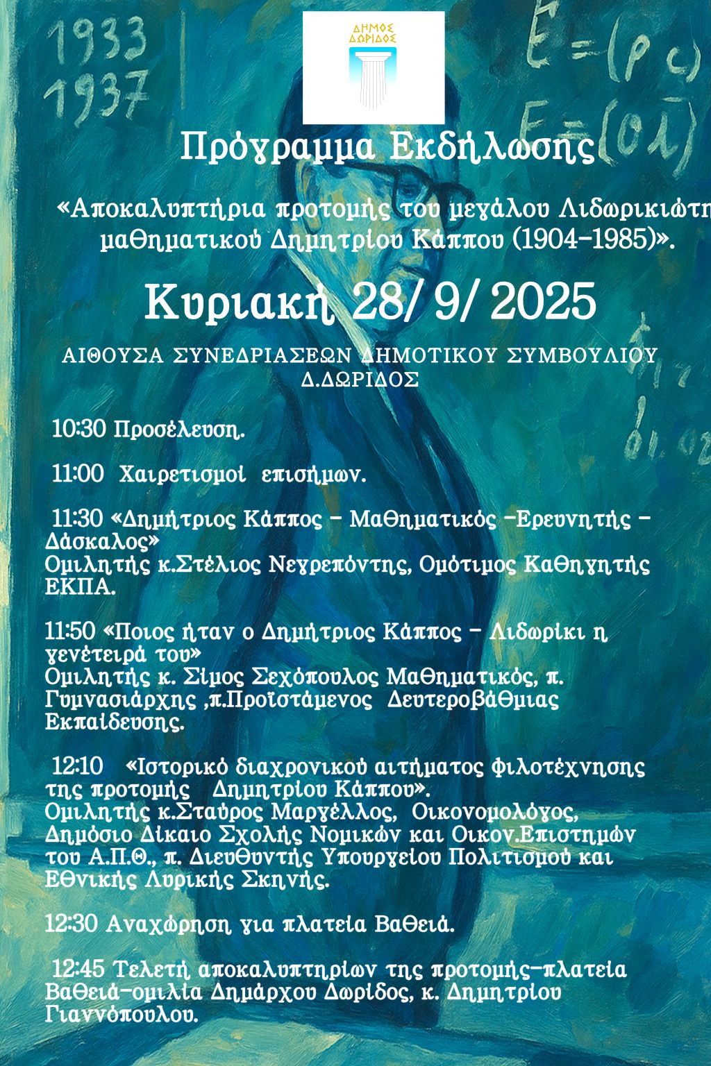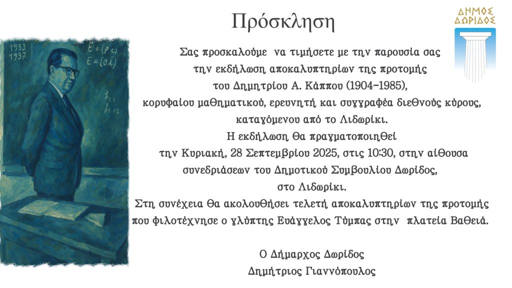 Νέα Ημερομηνία Εκδήλωσης για τα Αποκαλυπτήρια της Προτομής του Δημητρίου Κάππου, στο Λιδωρίκι ΕΠΙΚΑΙΡΟΤΗΤΑ Από doridanews Στις Σεπ 26, 2025 Share - Διαφήμιση -Χρόνος ανάγνωσης: 2 λεπτά Συνεχίστε να διαβάσετε- Διαφήμιση - Share