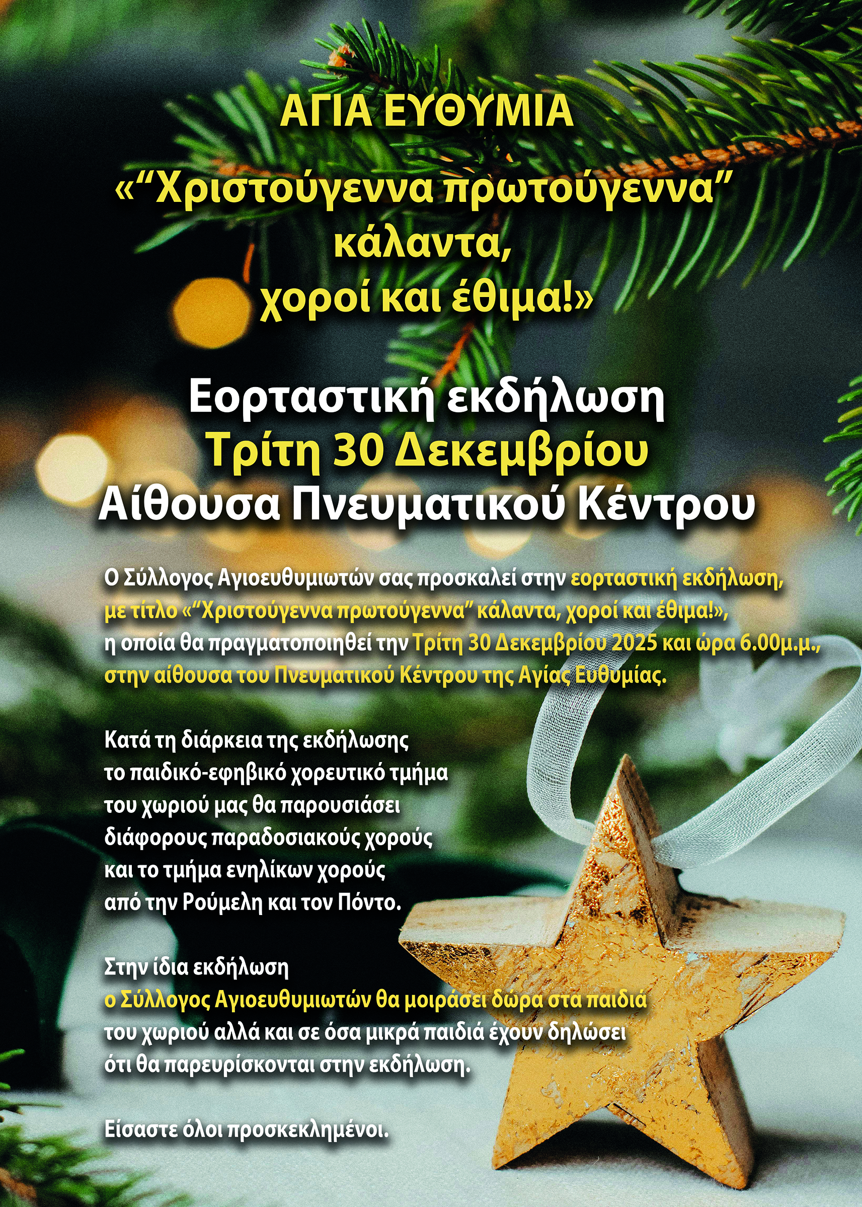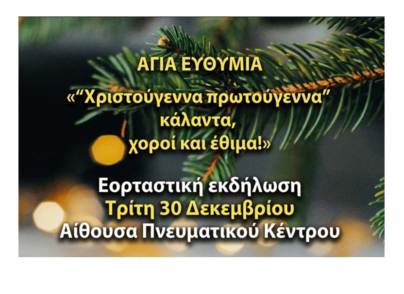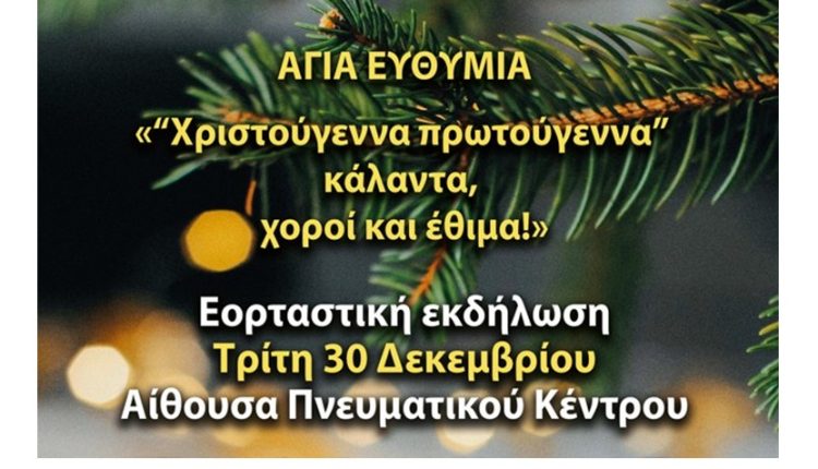 Εορταστική εκδήλωση στην Αγία Ευθυμία την Τρίτη ΚΟΙΝΩΝΙΚΑ Από doridanews Στις Δεκ 29, 2025 Share - Διαφήμιση -Χρόνος ανάγνωσης: 1 λεπτό Συνεχίστε να διαβάσετε- Διαφήμιση - Share