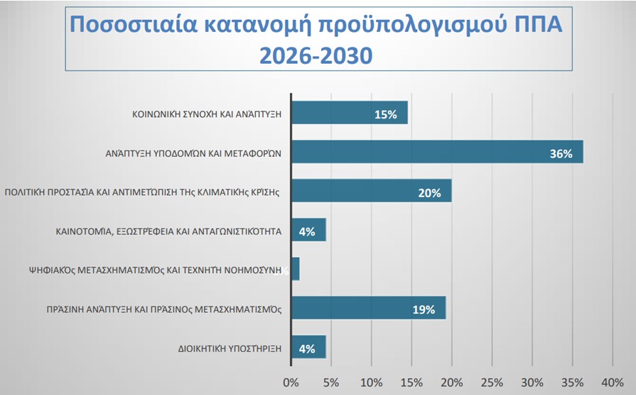 Ο συνολικός προϋπολογισμός του «ΠΠΑ Στερεάς Ελλάδας 2026 – 2030» ανέρχεται σε 275.000.000 ευρώ -αυξημένο κατά 6% σε σχέση με το προηγούμενο- και η κατανομή του σε επίπεδο αναπτυξιακών στόχων έχει ως εξής: