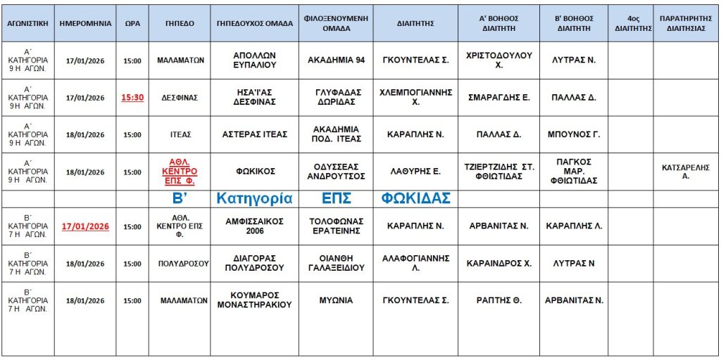 Εύκολα παιχνίδια των πρωτοπόρων στην 9η αγωνιστική της Α’ Κατηγορίας ΕΠΣ Φωκίδας το Σαββατοκύριακο