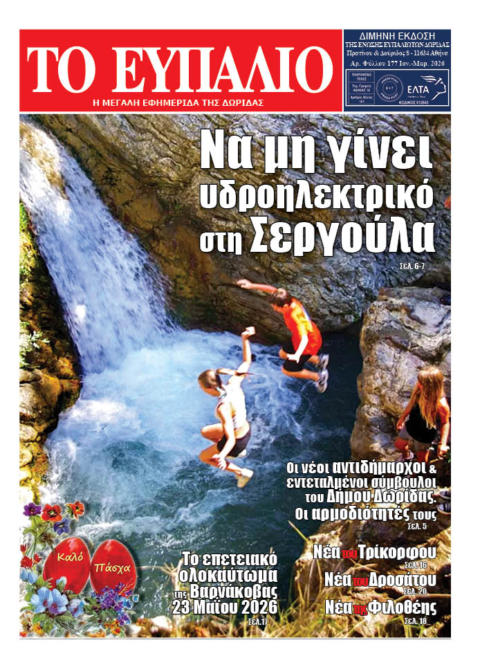 Με πρώτο θέμα, την πανδωρική απαίτηση να μη γίνει υδροηλεκτρικό έργο στον καταρράκτη της  Σεργούλας κυκλοφόρησε το νέο φύλλο της εφημερίδας “Το Ευπάλιο”.